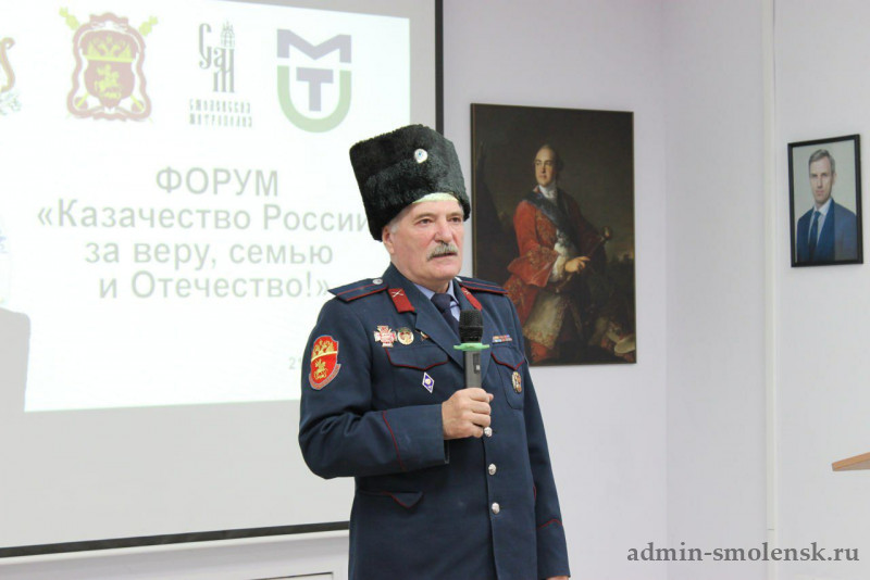 Смоленская земля является одним из старейших территориальных образований русского казачества. Впервые смоленские казаки упоминаются более 500 лет назад – в 1520 году. И место проведения форума выбрано не случайно. В Смоленской области Смоленский казачий институт промышленных технологий и бизнеса (филиал) федерального государственного бюджетного образовательного учреждения высшего образования «Московский государственный университет технологий и управления имени К. Г. Разумовского – единственная образовательная организация, реализующая казачий компонент.