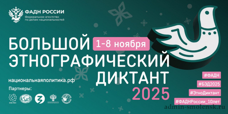 Федеральное агентство по делам национальностей с 1 по 8 ноября совместно с партнерами проведет десятую, юбилейную Всероссийскую просветительскую акцию «Большой этнографический диктант». Она создана с целью укрепления общероссийской гражданской идентичности, популяризации традиционных российских духовно-нравственных ценностей и борьбы с фальсификацией истории. О том, как будет проходить диктант в Смоленской области, журналистам Смоленской области рассказали на пресс-конференции.
